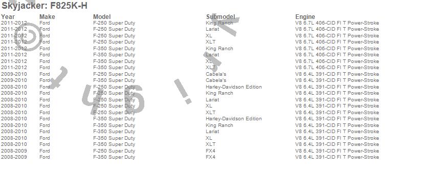 Below is an abbreviated list of applications for the Suspension Lift Kit w/Shock.F-250 Super Duty Pickup, F-350 Super Duty Pickup, Ford, 2012, 2011, 2010, 2009, 2008