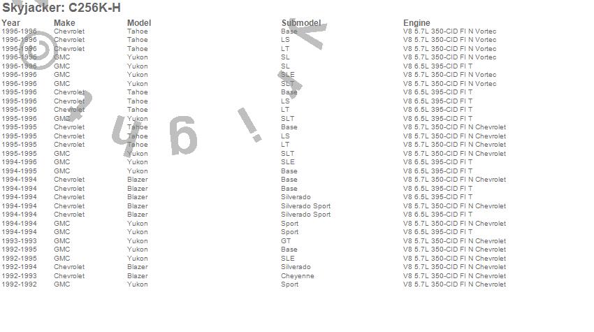 Below is an abbreviated list of applications for the Suspension Lift Kit w/Shock.Blazer, Tahoe, Yukon, Chevrolet, GMC, 1996, 1995, 1994, 1993, 1992