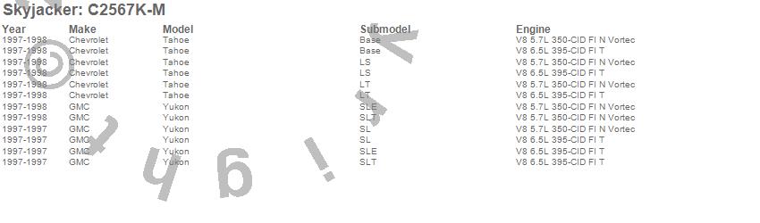 Below is an abbreviated list of applications for the Suspension Lift Kit w/Shock.Tahoe, Yukon, Chevrolet, GMC, 1998, 1997
