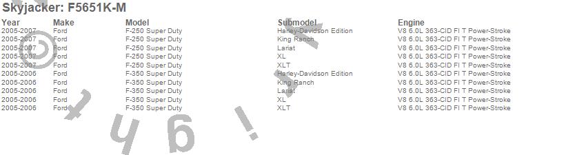 Below is an abbreviated list of applications for the Suspension Lift Kit w/Shock.F-250 Super Duty Pickup, F-350 Super Duty Pickup, Ford, 2007, 2006, 2005