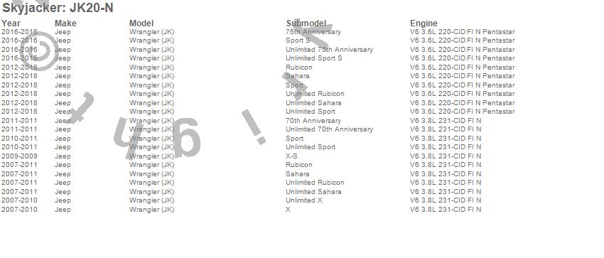 Brand: SkyjackerPart Number: JK20-NLift Kit-Suspension w/Shock Type: Nitro Shocks - 2 in. Lift - Incl. Front/Rear 2 in. Polyurethane Coil Spring Spacers w/Bump Stop SpacersUPC: