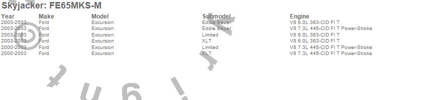 Below is an abbreviated list of applications for the Suspension Lift Kit w/Shock.Excursion, Ford, 2003, 2002, 2001, 2000