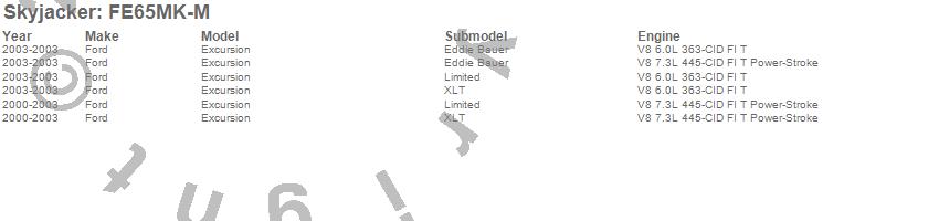 Below is an abbreviated list of applications for the Suspension Lift Kit w/Shock.Excursion, Ford, 2003, 2002, 2001, 2000