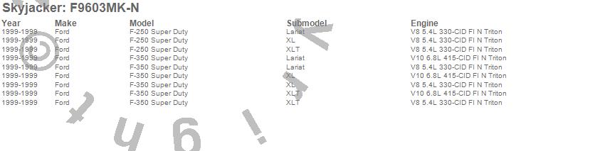 Brand: SkyjackerPart Number: F9603MK-NLift Kit-Suspension w/Shock Type: Nitro Shocks - 6 in. Lift - Incl. Fr Leaf Springs - Track Bar Brkts - Front/Rear UBolt Kits - Spring Bushing Kit - Rear Block - Sway Bar LinksUPC: