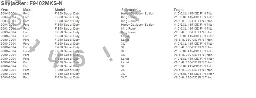 Below is an abbreviated list of applications for the Suspension Lift Kit w/Shock.F-250 Super Duty Pickup, F-350 Super Duty Pickup, Ford, 2004, 2003, 2002, 2001, 2000