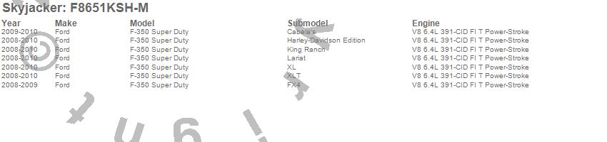 Below is an abbreviated list of applications for the Suspension Lift Kit w/Shock.F-350 Super Duty Pickup, Ford, 2010, 2009, 2008