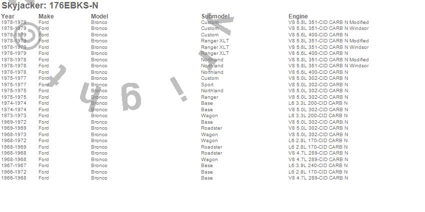 Below is an abbreviated list of applications for the Suspension Lift Kit w/Shock.Bronco, Ford, 1979, 1978, 1977, 1976, 1975, 1974, 1973, 1972, 1971, 1970, 1969, 1968, 1967, 1966