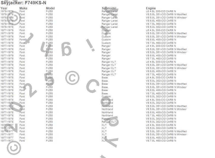 Below is an abbreviated list of applications for the Suspension Lift Kit w/Shock.F-250 Pickup, Ford, 1979, 1978, 1977
