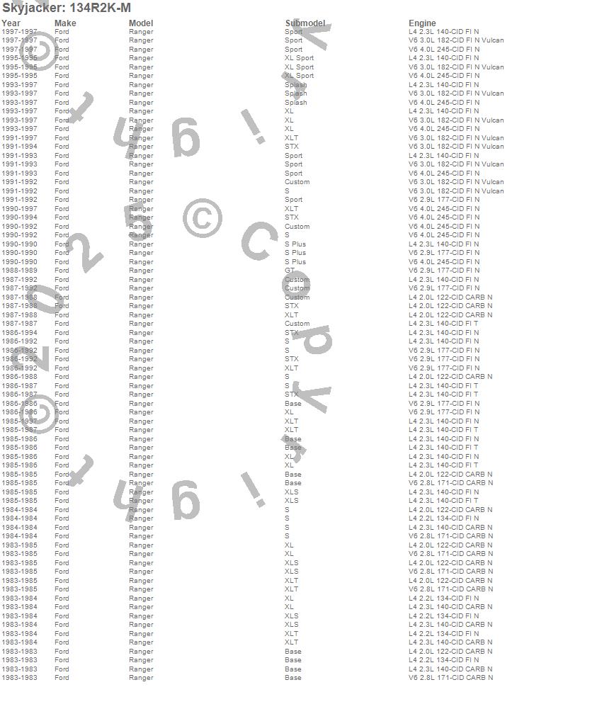 Below is an abbreviated list of applications for the Suspension Lift Kit w/Shock.Ranger, Ford, 1997, 1996, 1995, 1994, 1993, 1992, 1991, 1990, 1989, 1988, 1987, 1986, 1985, 1984, 1983