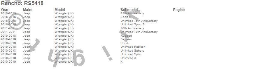 Below is an abbreviated list of applications for the RS5000 Steering Damper.WRANGLER, JEEP, 2013, 2012, 2011